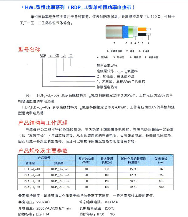 • 產品名稱:HWL型恒功率伴熱帶