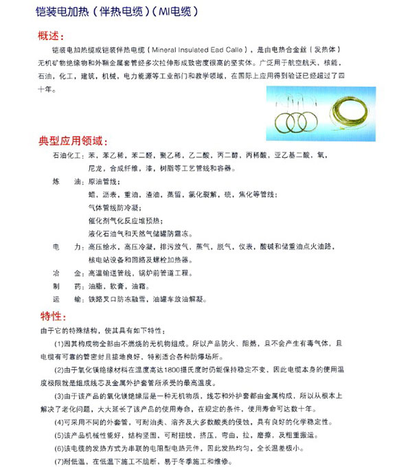 • 產(chǎn)品名稱:鎧裝電加熱電纜