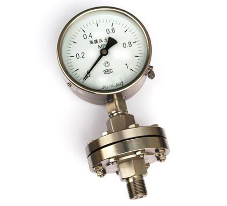 膜片壓力表由測量系統(包括法蘭接頭、波紋膜片)、傳動指示機構(包括連桿、齒輪傳動機構、指針和度盤)和外殼(包括表殼和罩圈)等組成。膜片壓力表外殼為防濺結構,具有較好的密性,故能保護其內部機構免受污穢浸入。